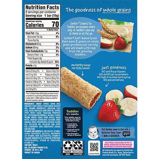 Gerber Soft Baked Grain Bars, 12+ Months, Strawberry Banana, 8 Bars - 156g