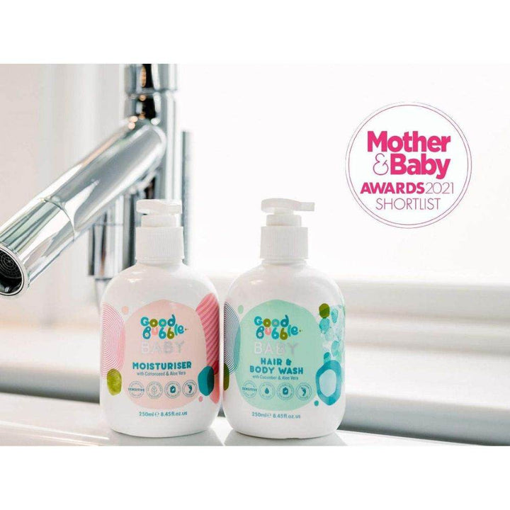 Discover the gentle cleansing power of Good Bubble Hair & Body Wash with Cucumber & Aloe Vera, a must-have for every parent's bath time routine. Specifically designed as an organic baby hair and body wash, this product offers a nurturing blend that is perfect for sensitive young skin. The 250ml bottle ensures lasting freshness and convenience.