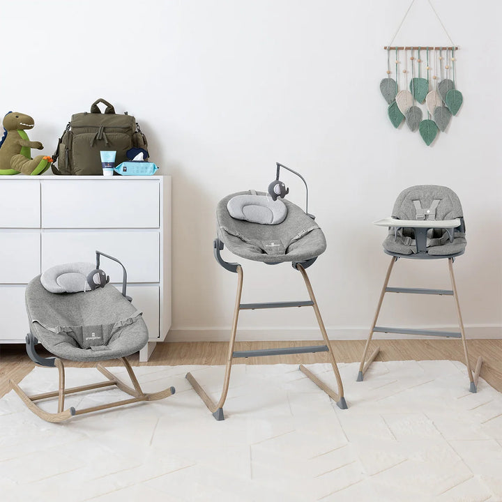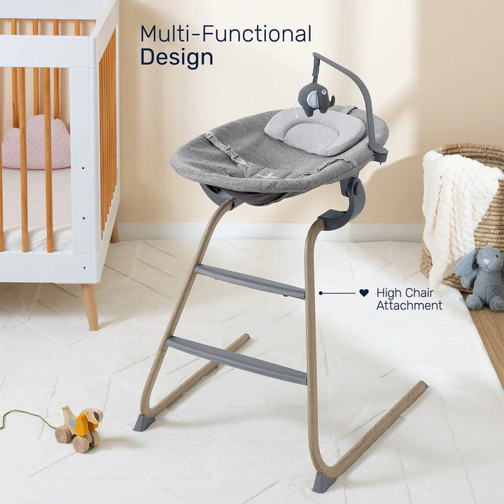 Growgether Gravity High Chair & Baby Rocker Newborn Combo | Ergonomic High Chair (6M-5Y) with 5-Point Harness + Newborn Rocker (0-6M) with 3-Position Recline | Tool-Free Click System, Washable Covers