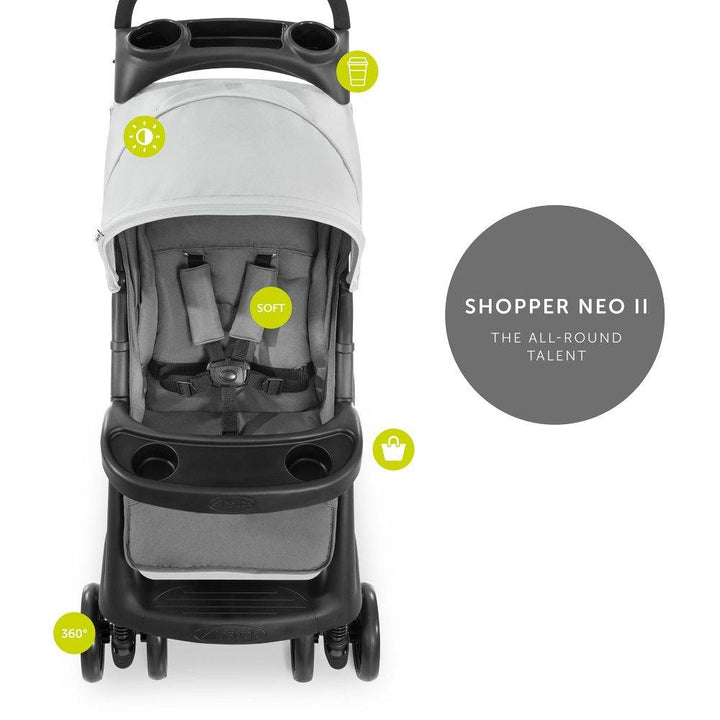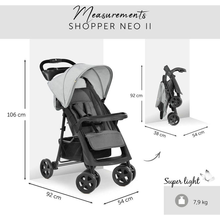 Shopper Neo II is the perfect companion for shopping and travel. It can be unlocked and folded down quickly and compactly with just one hand, leaving the other one free for your child.