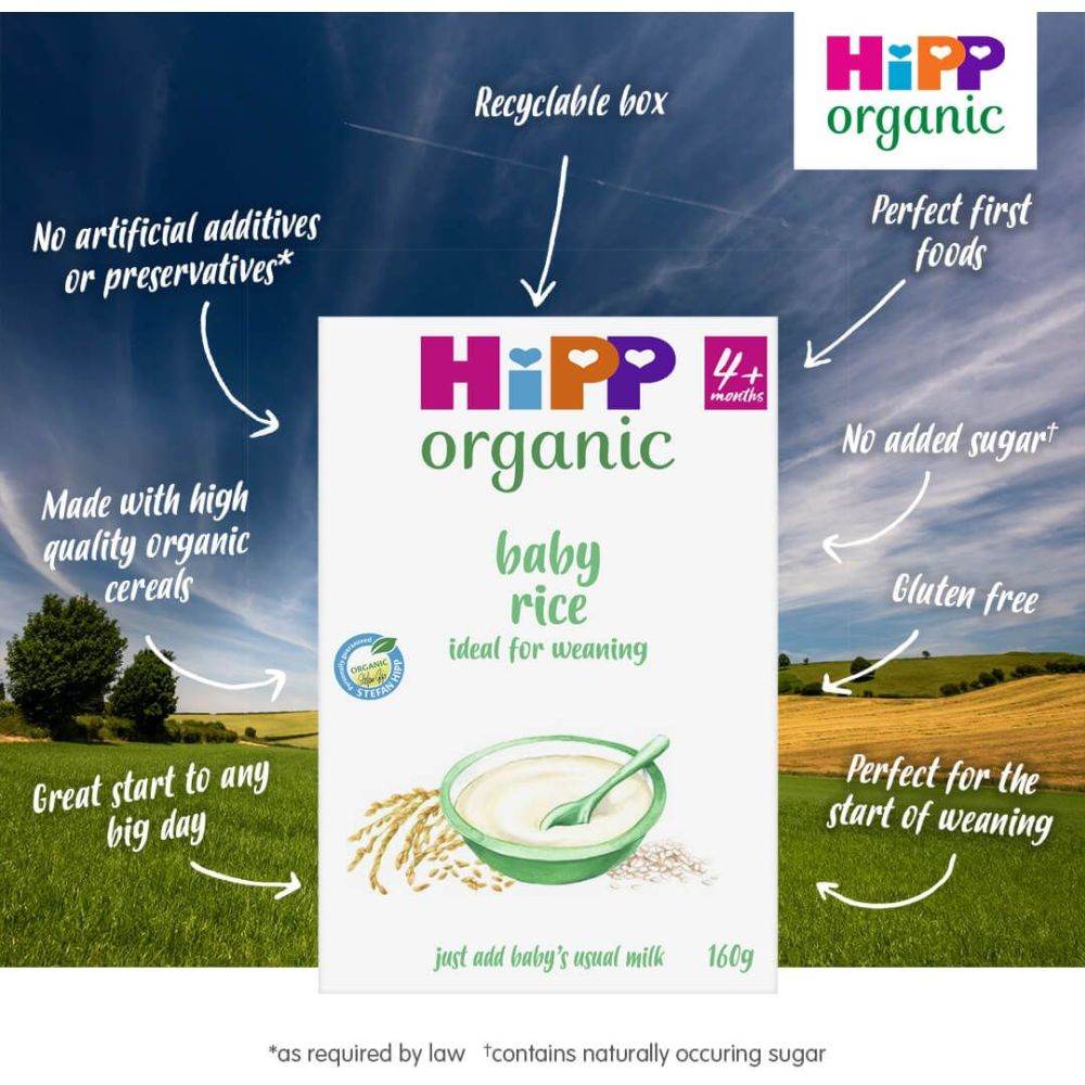100% organic rice flakes. Hipp Organic Baby Rice delicious breakfast cereals are made with the finest organic ingredients, packed with energy and important nutrients to give your baby the best possible start to the day. Stefan Hipp, one of the fourth-generation family owners of HiPP organic, personally guarantees every product we make, just as his family has done for over 120 years. HiPP organic quality is something particularly special and very important to us. It don't just meet EU organic standards, it exceed them. To achieve this, Hipp Organic work with nature rather than against it, in a sustainable way that protects bio-diversity, helping us to produce the best possible organic ingredients. Family owned sustainable business. Hipp Organic ? Good natured since 1899. Ingredients Rice Flour* (100%), Thiamin (Vitamin B1). *Organic