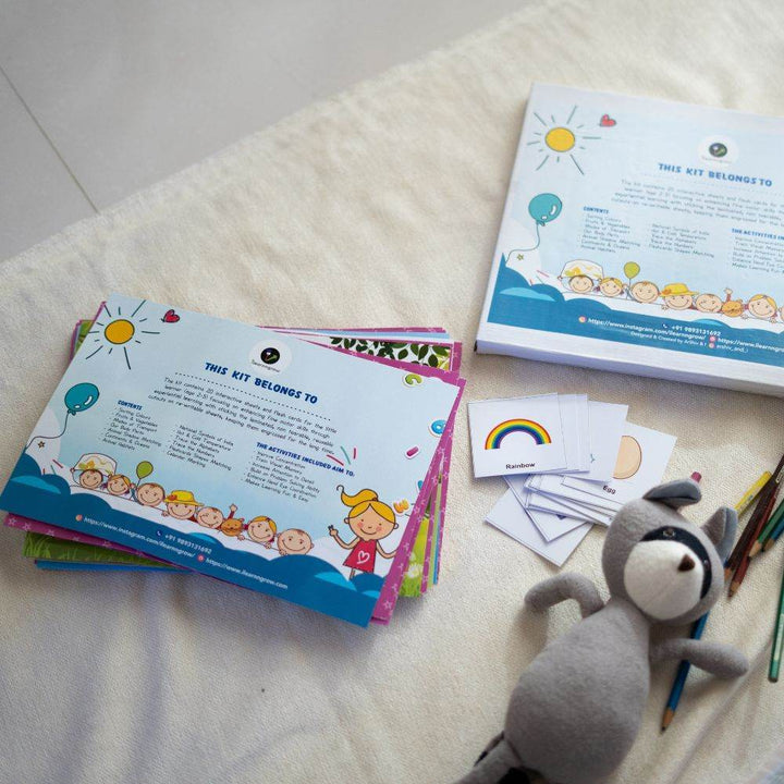 Introducing the Early Learning English Kit: A Comprehensive Educational Set for Ages 2-5 Unlock the world of learning with our meticulously designed Early Learning English Kit. Tailored for children aged 2-5 years, this kit encompasses 11 interactive sheets and engaging flashcards, providing a holistic educational experience. Crafted with love in India, this game is free from any harmful or hazardous substances, ensuring the safety of your little ones.
