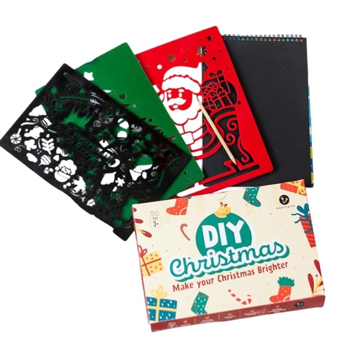 Unleash your artistic flair and dive into the enchanting world of DIY crafts with our specially curated kit. This delightful package features three Christmas-themed stencils and a magical scratch book, providing endless possibilities for creative expression.