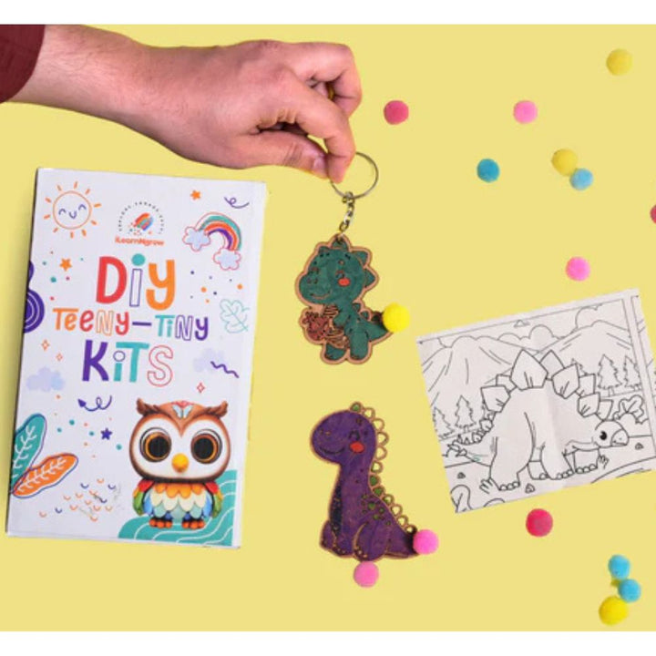 The iLearnNGrow Teeny Tiny Dino Painting Kit is the perfect way to combine fun, learning, and prehistoric adventure! Designed to engage young minds, this DIY kit allows children to explore their creativity while making three unique dinosaur-themed crafts: a keychain, a fridge magnet, and a mini canvas painting.