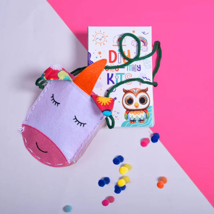 The iLearnNGrow Teeny Tiny DIY Sew Your Own Bag is a magical introduction to sewing for little crafters. Designed around a whimsical unicorn theme, this kit includes pre-cut bag parts and all the essentials Fevicol, a plastic needle, and white thread—to help children stitch together their very own crossbody bag.