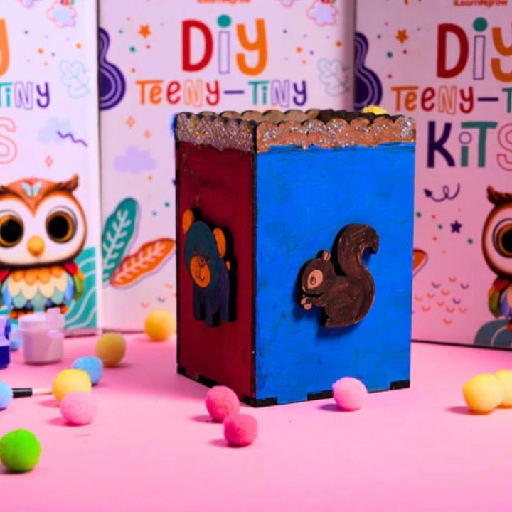 The iLearnNGrow Teeny Tiny DIY Pen Stand is a perfect blend of creativity and functionality, designed to let kids build and decorate their own personalized pen holder. This engaging craft kit includes a sturdy pen stand base along with 6 vibrant, non-toxic paint colors, colorful pom poms, sparkly glitter, and Fevicol glue—everything your child needs to create a masterpiece that’s both fun and useful.