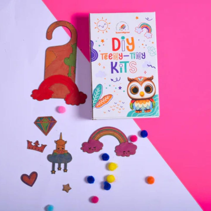 The iLearnNGrow Teeny Tiny Unicorn Theme Name Plate and Door Knob Kit is a fun and imaginative DIY activity designed to personalize and brighten up any child’s space. Featuring a charming unicorn design, this set includes a customizable name plate and door knob hanger that kids can decorate with their own unique style.