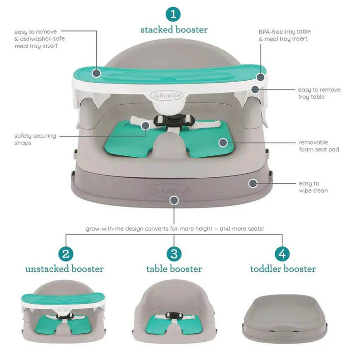 Infantino Grow-with-me 4-in-1 Two-Can-Dine Deluxe Feeding Booster Seat- Teal & Grey- 6 to 36 Months