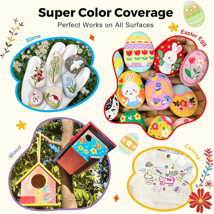 Ideal for Toddlers: This tempera paint for kids not only provides rich and vivid hues but also serves as the creative tool for kids art supplies. It can be used on paper, wood, stone, glass, canvas. Our paint sticks can be used to create unique patterns for Easter basket or Easter cards. Includes rabbit, carrot, egg, chick, flower,etc.