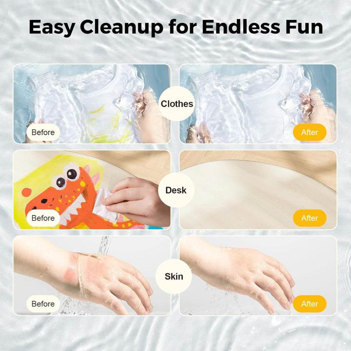 Easy to Wash: Our tempera paint sticks use a safe formula and quick drying design, so that children's hands won't get dirty when drawing. Skin or smooth surfaces can be easily cleaned, and washable paint for kids gives parents more peace of mind, ensuring safe use for toddler painting.