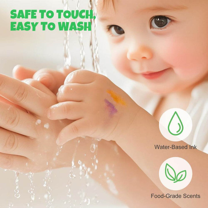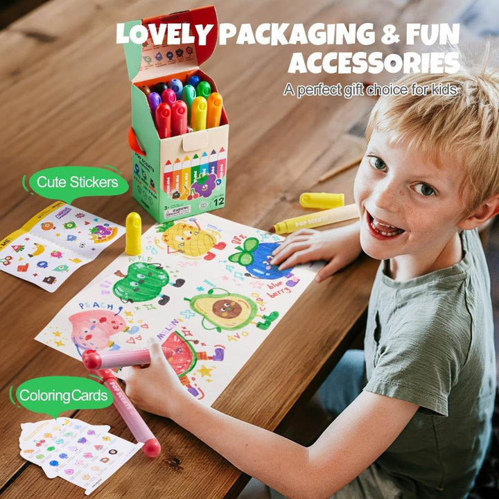 Perfect Gift for Young Artists: Jar Melo kids coloring markers combine safe, washable, fruit scented, skin-friendly, smooth writing, no bleeding, long-lasting with a colorful, reusable portable box design, comes with stickers and coloring cards, making them the perfect gift for birthdays, holidays, travel, or playdates.