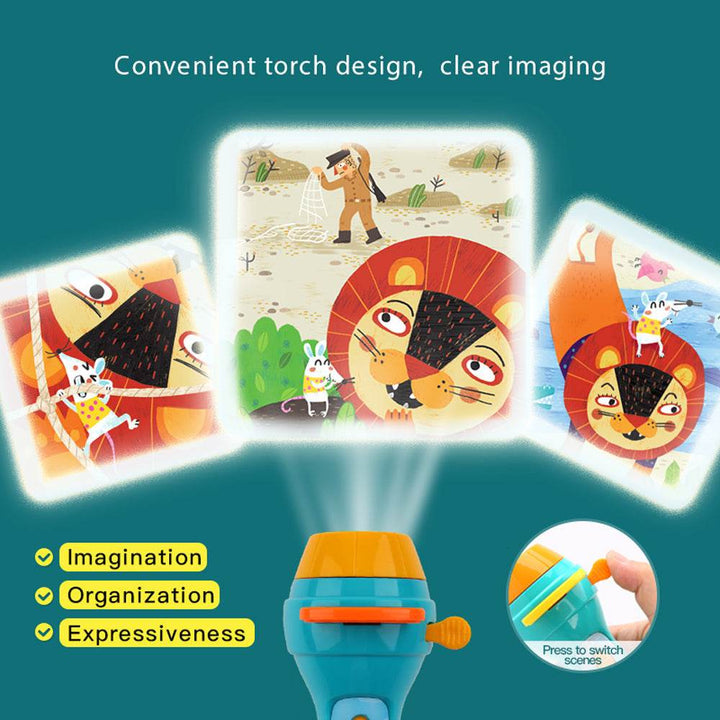 This delightful storytelling projector set has a flashlight projector with story discs that can be projected onto a wall with classic storybook pictures. Retell the classic story of either the3 Little Pigs, Little Mermaid, Ugly Duckling or Lion and Mouse by moving��through images on the discs from start to end. Use the shadow puppets to add drama and movement to your story too. Once you���ve retold the classic stories, this set also includes more shadow puppets and projector disc to create your own bedtime fable.