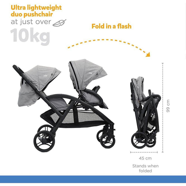 A cheery combo designed to carry two littles and all their luggage without the load. Lightweight luxury makes travelling with two twice as nice.