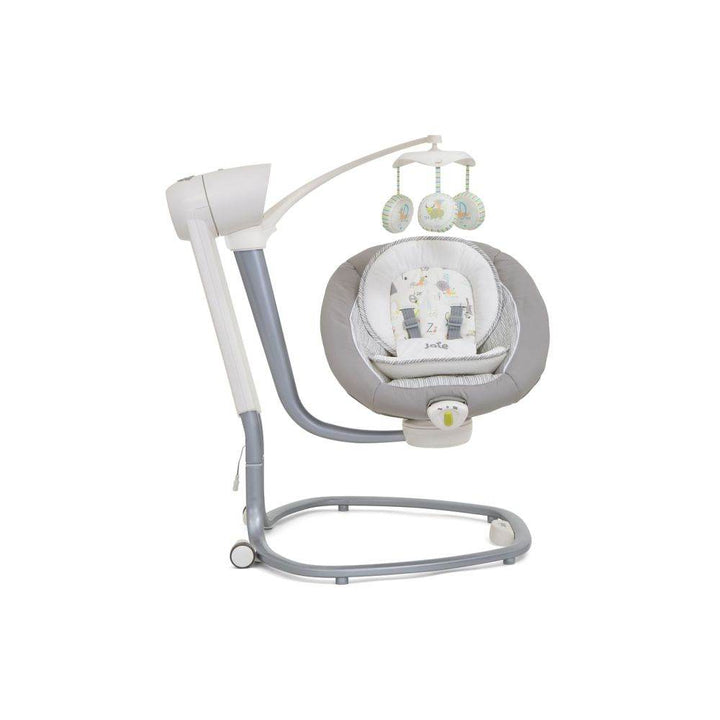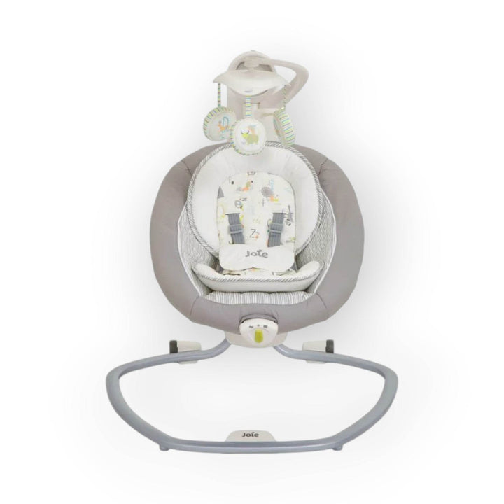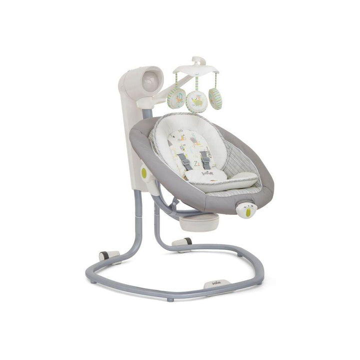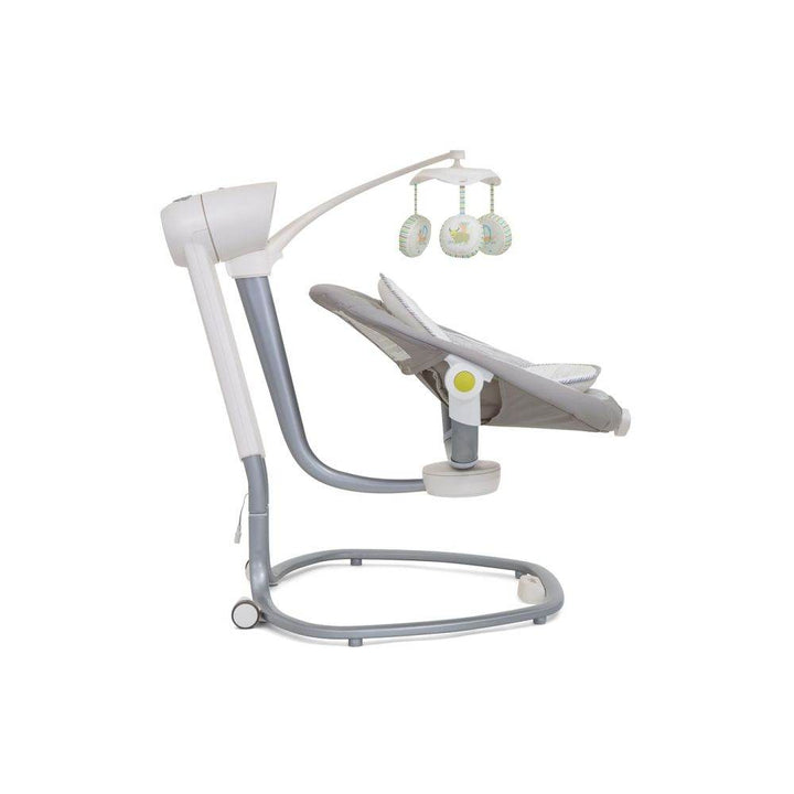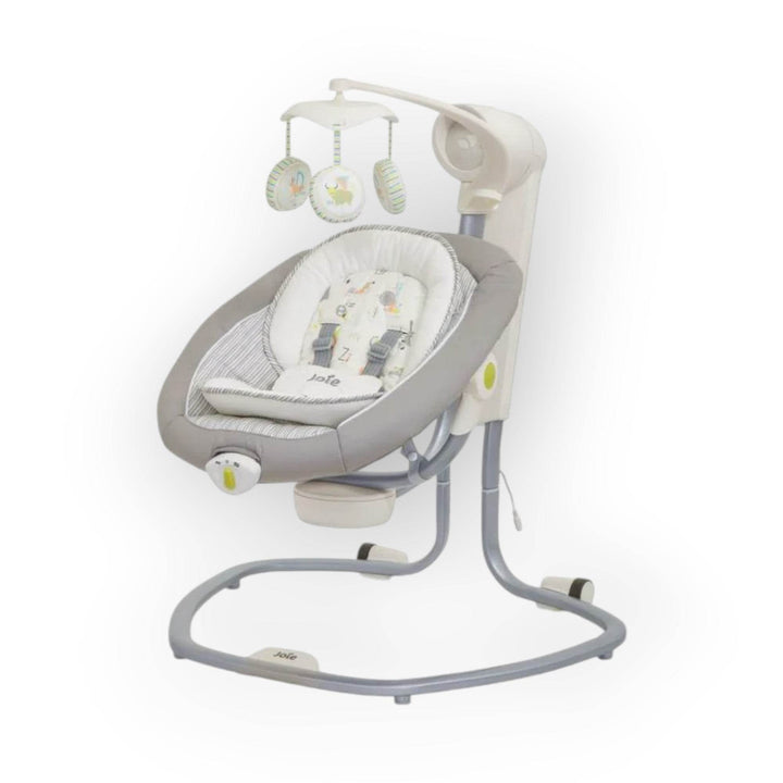 A swivelling, swaying seat soothes littles from birth on. 2 way reclining seat, vibration and sounds for a peaceful nap time, anytime.