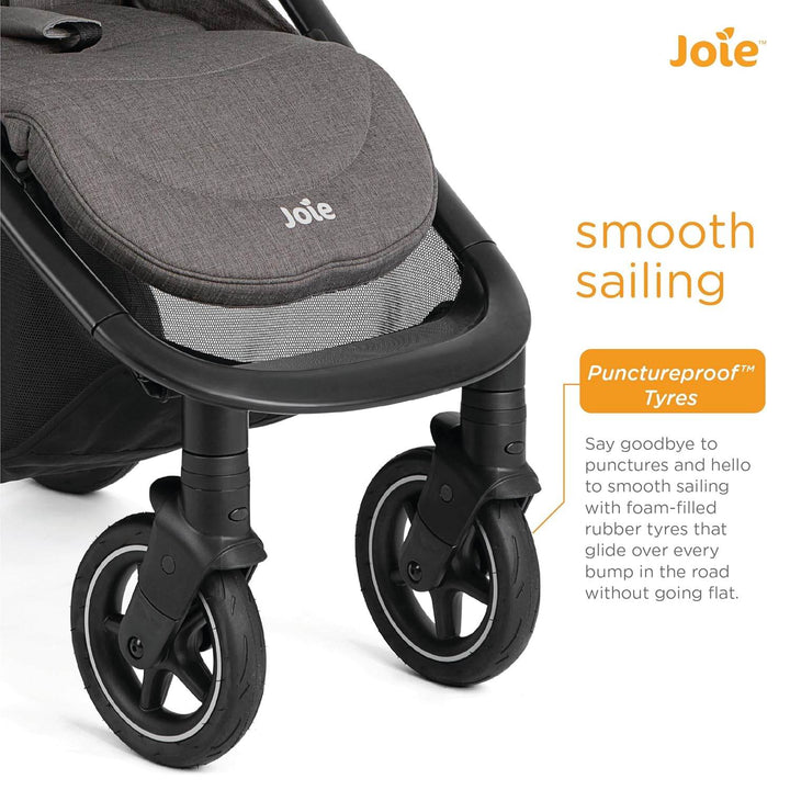 Joie Mytrax Pro is another version of the famous stroller. Part of the Trax stroller family, this model has a lot in common with other strollers, but it's a completely different stroller. It features a sleek shape, luxurious details, and puncture-resistant wheels.