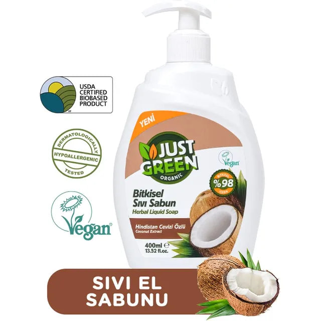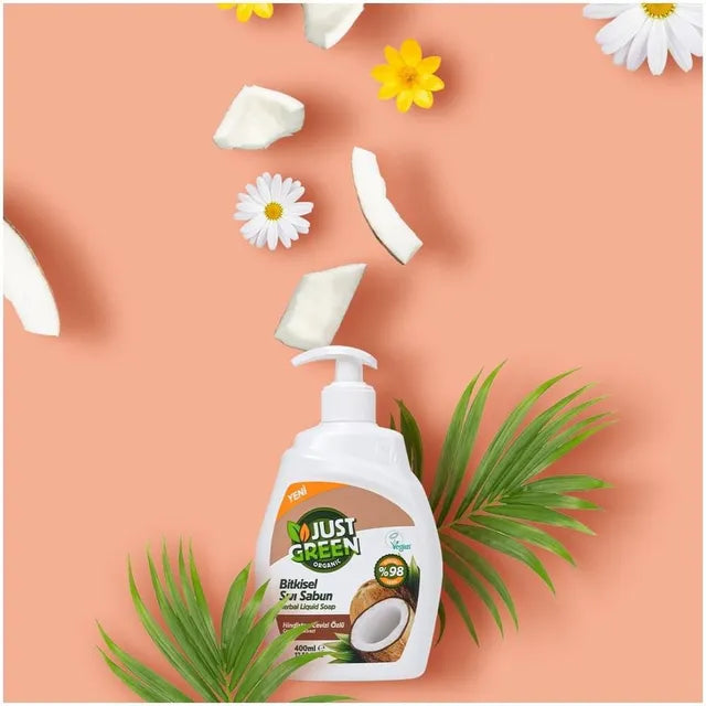 Just Green Organic Herbal Liquid Hand Soap, 400 ML -Coconut
