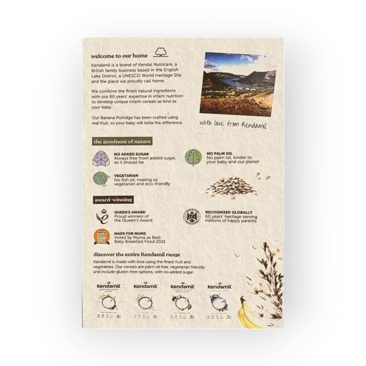 Manufactured in the UK with a commitment to quality and safety, Kendamil ensures each serving maintains nutritional integrity and freshness. Trust Kendamil Banana Porridge to support your baby's healthy growth and development with every spoonful.