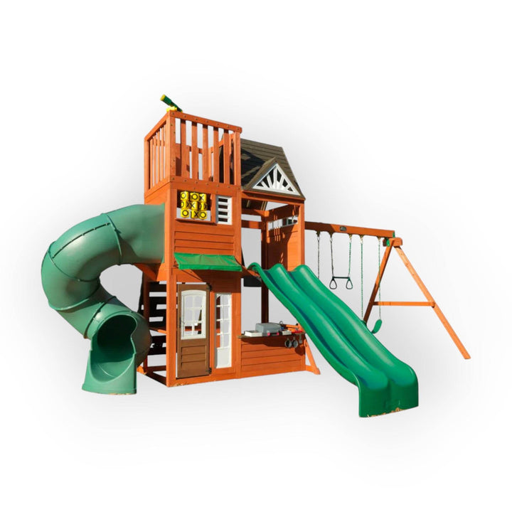 It's five-alarm fun with the Hilltop Playset from KidKraft. The cool fireman's pole provides another level of activity to this three-story fort. Spend