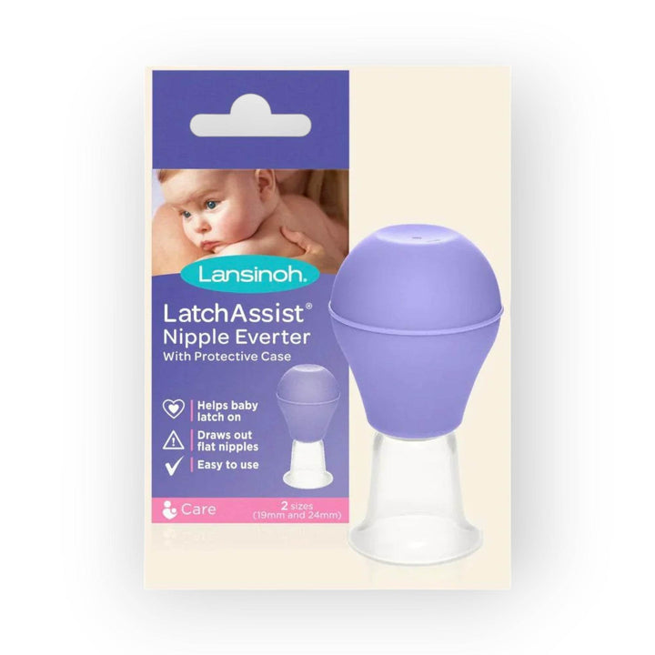 Feeling frustrated with flat or inverted nipples? Lansinoh® LatchAssist® Nipple Everter gently draws out flat or inverted nipples, making it easier for your baby to latch and breastfeed. Easy to use, allowing you to control the suction level for your comfort. Includes two flange sizes (19mm and 24mm) to ensure the proper fit.