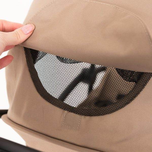 With one touch from you, the stroller automatically folds with the help of gravity. There are no fragile springs or air pressure used. The auto-folding mechanism is strong and durable and of course, it's in our warranty.