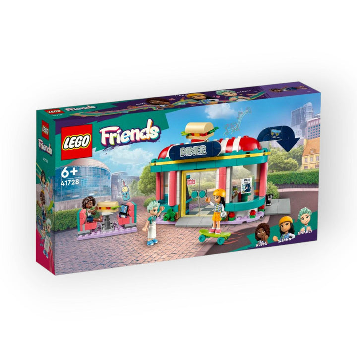 Kids aged 6 and up can role-play lots of restaurant stories with this LEGO Friends Heartlake Downtown Diner building toy set. With lots of accessories to inspire creative play, they can pretend to make sandwiches or imagine being a customer at the diner. Features include a drive-through, outdoor seating, plus an arcade game and a moving jukebox. Kids can use the salad ingredients in the fridge to customize sandwiches. Other accessories include 2 drinks, money, 3 slices of bread for sandwiches, a napkin holder, a trash can and a skateboard. There’s also a mischievous cat who loves to visit the diner!