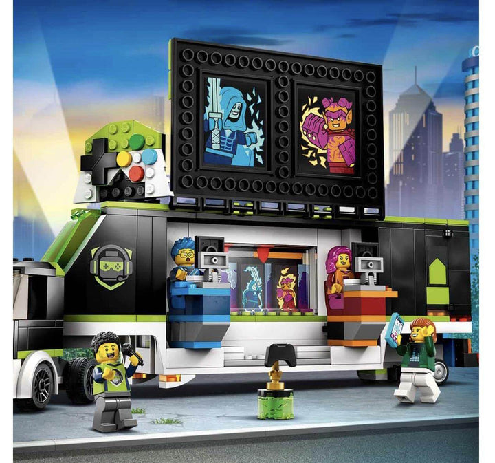 Gaming tournament playset – The LEGO City Gaming Tournament Truck is loaded with equipment for staging imaginary gaming competitions