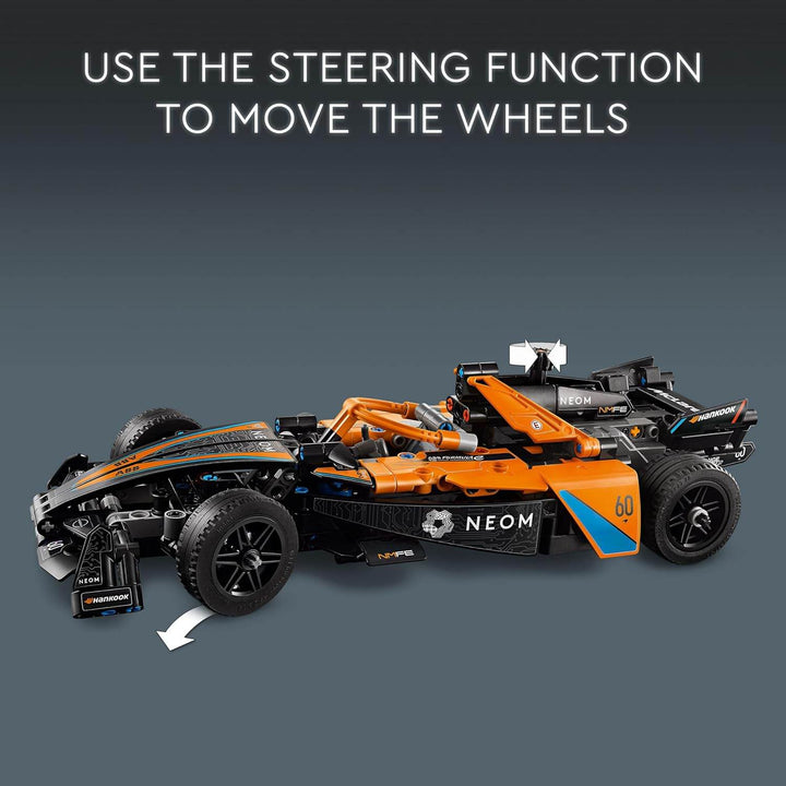Let kids aged 9+ race into the world of a Formula E team as they build and play with this LEGO Technic NEOM McLaren Formula E Race Car model set (42169). Boys and girls enjoy a rewarding project as they assemble the vehicle, then put their McLaren model car toy to the test using the exciting double pull-back function to send it speeding along. The model also includes a steering function so kids can set a course for the car as they imagine what it’s like to race with the McLaren team. This cool LEGO set makes a great gift for kids who love vehicles and race car toys. LEGO Technic building sets for kids feature realistic details that introduce young LEGO builders to engineering in an approachable way. Let the LEGO Builder app guide your youngster on an intuitive building adventure, allowing them to zoom in and rotate models in 3D, save sets and track their progress.