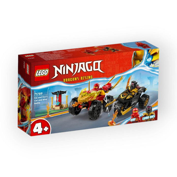 Kai and Ras?s Car and Bike Battle is the perfect way to introduce toddlers ages 4+ to both the thrilling world of NINJAGO and the joys of building with LEGO bricks. The fantastic Ninja playset includes a dragon car, an all-terrain vehicle, Kai and Lord Ras minifigures, a piece of blue lightning in a display holder and 2 flame elements for kids to play out exciting action from the NINJAGO Dragons Rising TV series. The LEGO NINJAGO vehicle playset has been specially designed to give little Ninja fans ages 4+ a great build-and-play experience. Inside the box, each bag of bricks has a model and a character to build so kids can get the action underway quickly. There is also a Starter Brick that provides a partly constructed base to get kids building. A fun digital experience for little LEGO builders in the LEGO Builder app guide you and your child on an easy and intuitive building adventure. Zoom in and rotate models in 3D, save sets and track your progress. Contains 103 pieces.