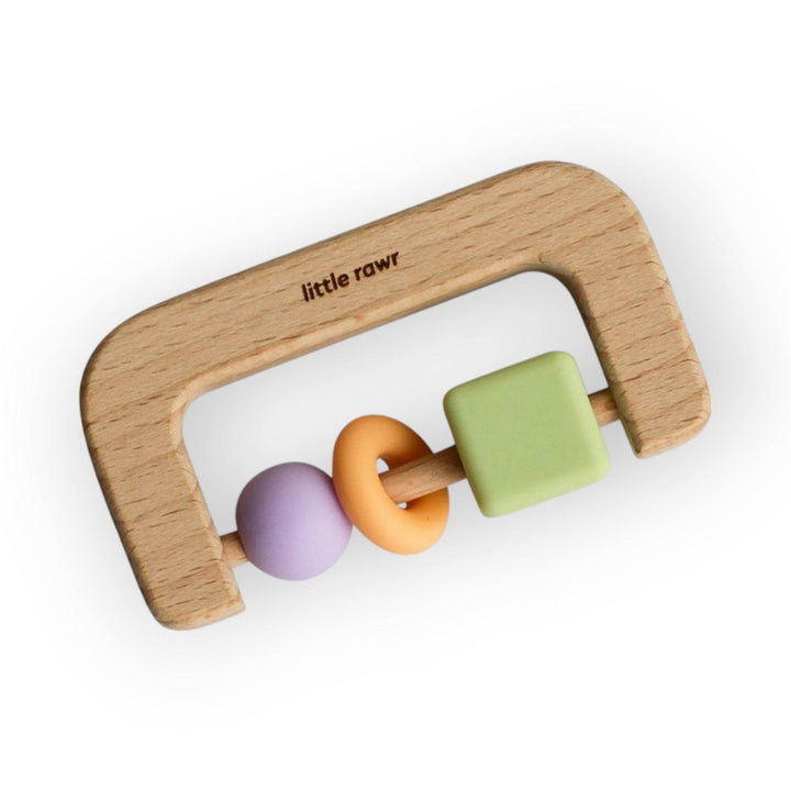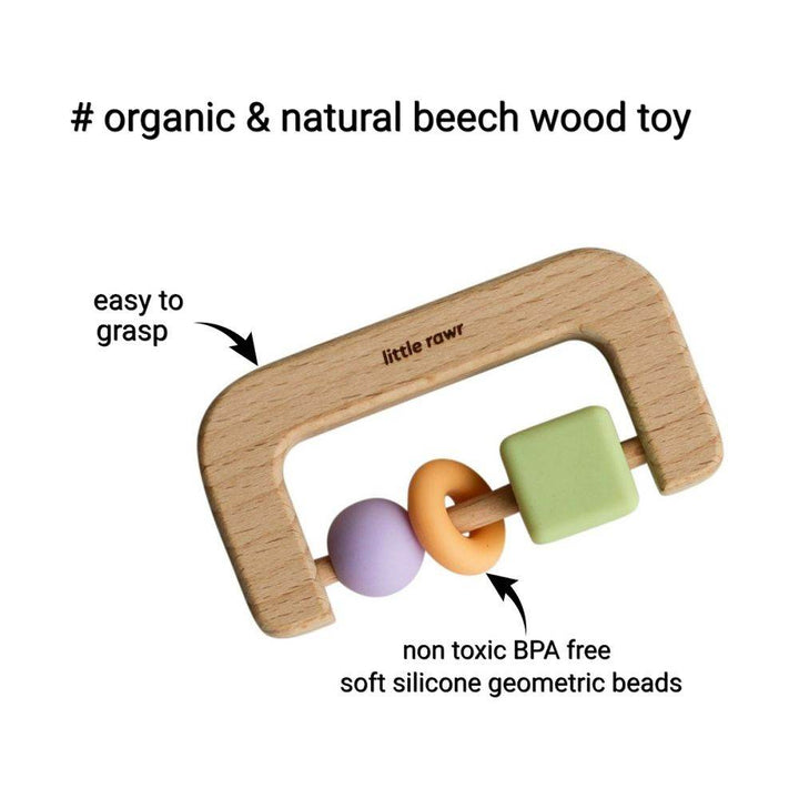 Little Rawr Wood + Silicone Bead Shape Teether Toy