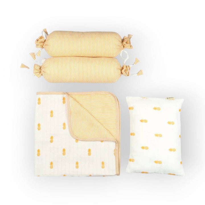 "Our pillows are lovingly handmade with an organic cotton cover and a soft poly filler, making them all the more snuggly to sleep on!