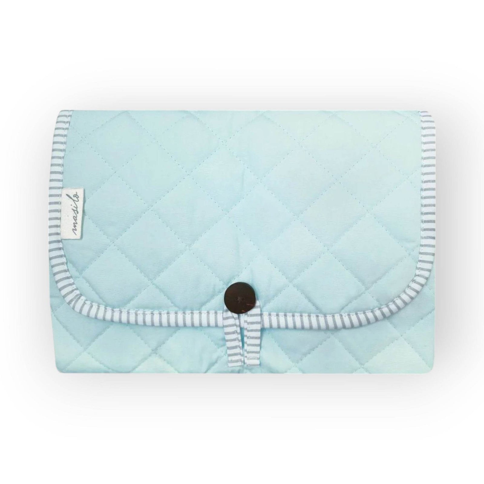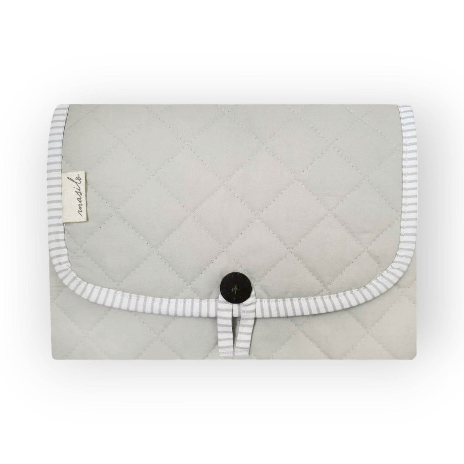 This modern and practical Changing Mat is quilted with a soft padding to give your baby a comfortable base while changing diapers on-the-go. The mat is easily folded with one hand to a travel-friendly small size, that fits neatly into our Changing Bag. It also has a little pocket inside that fits a diaper and a muslin.