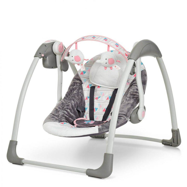 Mastela presents comfortable swing for your little one. The 2 position Recline seat with 3 point safety harness with shoulder restraint ensures comfort. Swing features 5 swing speed. Swing has Plaything bar with 2 fun Playthings. Fun melodies keep baby entertained.