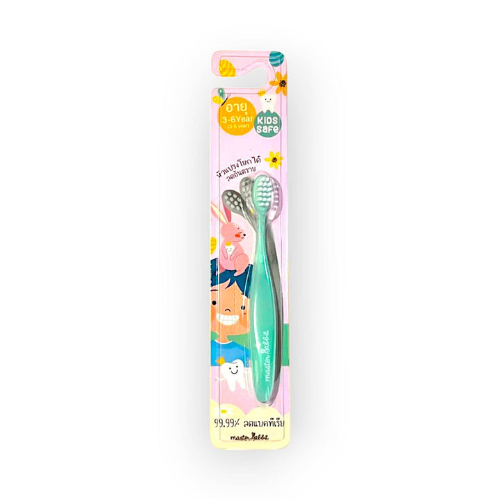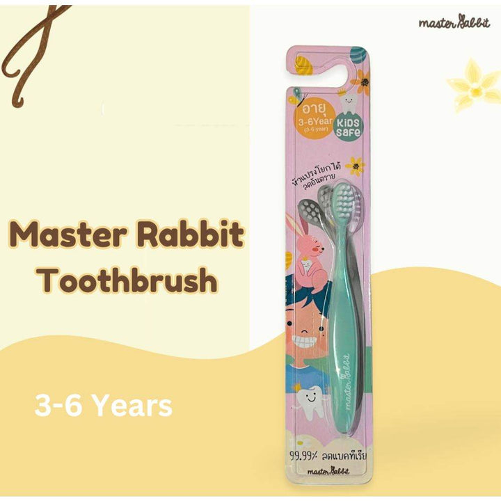 Introducing the Master Rabbit Gentle Toothbrush for 3-6 years,Green: designed with your child's dental care in mind. This specially crafted toothbrush features soft bristles and a gentle brush head for a soothing brushing experience on delicate gums and emerging teeth. The ergonomic handle is easy for small hands to grasp, promoting independence and confidence during brushing time. Encourage healthy oral hygiene habits from an early age with this adorable and effective toothbrush.