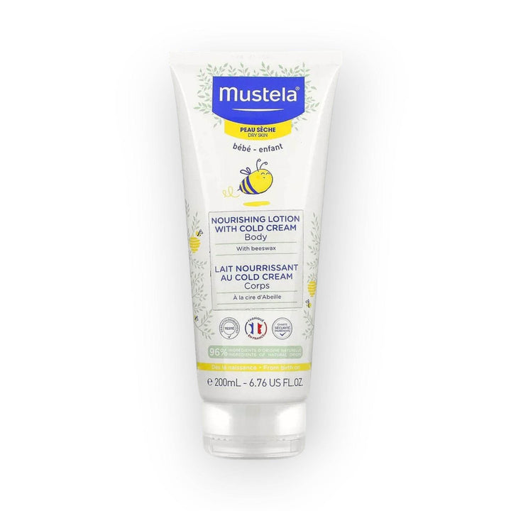 Mustela Nourishing Lotion with Cold Cream and Beeswax, 200ml, is a must-have baby lotion with cold cream that nourishes and protects your baby's delicate skin. Perfect for baby skin care, this beeswax baby lotion helps maintain moisture and leaves the skin soft. With natural ingredients, it’s an essential baby skincare product that provides long-lasting hydration and protection.
