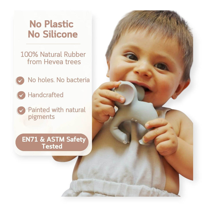 This product is perfect as a baby teether, babies and kids toy, bath toy, for sensory play and decorative object. It is made following an artisanal, sustainable and eco-friendly process with 100% natural rubber from Hevea trees. As it is made all in one piece with no holes, it avoids the creation of bacteria inside. Hand painted with natural pigments one by one, so there are no two alike!