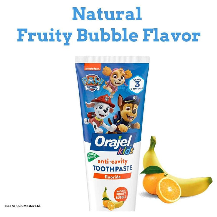 Orajel Kids Anti Cavity Toothpaste Fluoride Paw Patrol, 119g - Stage 3, 2-10Yrs Natural Fruity Bubble Flavor