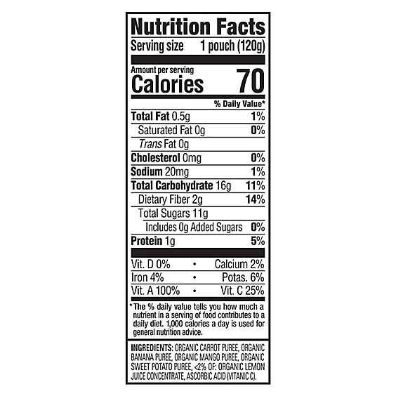 Organics Happy Tots- Carrots, Bananas, Mangoes & Sweet Potatoes Puree 120g, 2+ years