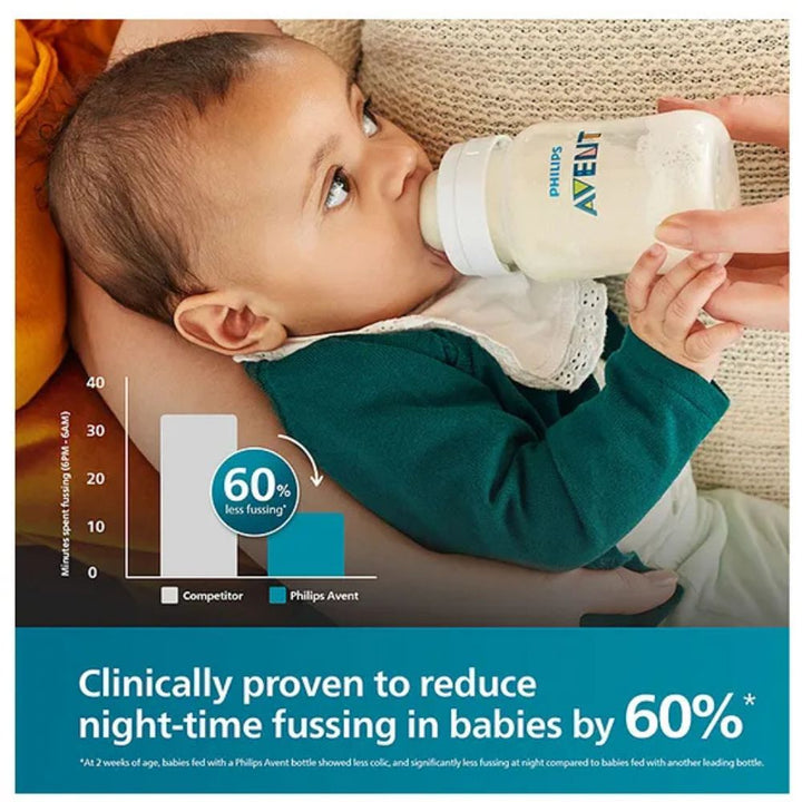 The Philips Avent Anti-colic Bottle is designed to reduce colic, discomfort, and fussing during feeding. Featuring a clinically proven Anti-colic valve, it vents air into the bottle to keep air away from your baby’s tummy, minimizing gas and colic. The bottle’s ribbed texture helps prevent nipple collapse, allowing for smooth and uninterrupted feeding. Its wide neck and fewer parts make assembly and cleaning easy. Made from BPA-free materials, this bottle ensures a safe and comfortable feeding experience for both parents and babies.