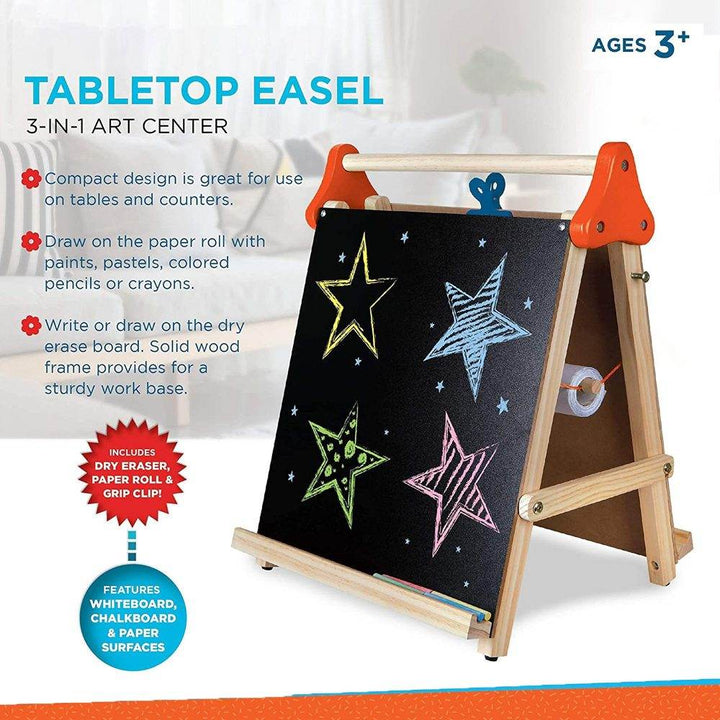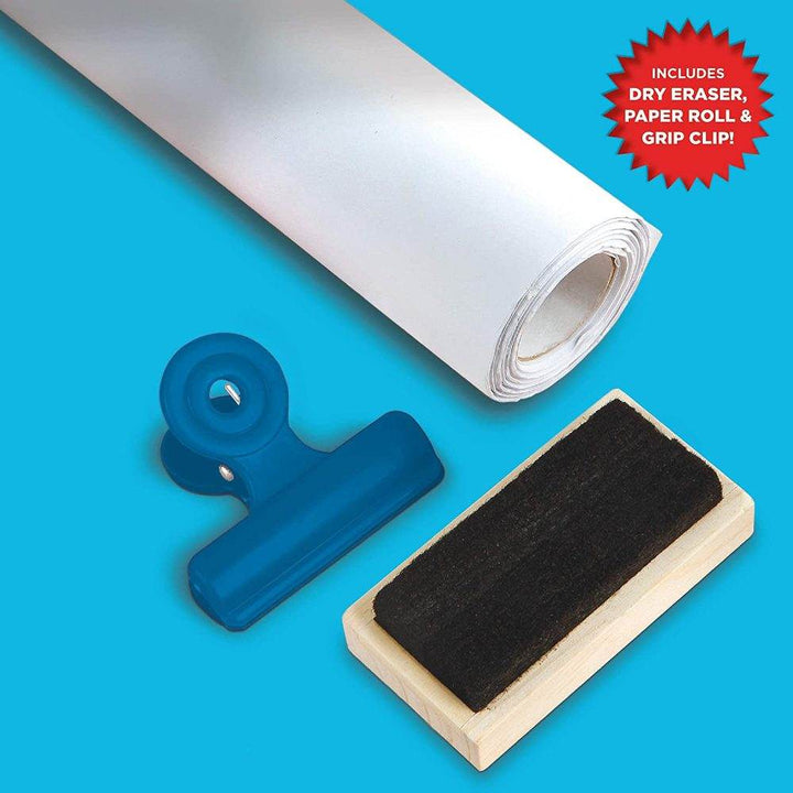 This writing board features multi-functional uses for drawing, writing & painting. This pack comes with a Chalk Board, White board, 1 big white sheet roll, 1 grip clip, 1 duster(eraser) and 1 chalk, so that your child can draw, paint, scribble, write his/her heart out. This board features a carrying handle which can be used to carry the board anywhere your child would like. The structure is made of wood and non-toxic child safe paints. This board is designed to save space. It folds flat making it storage friendly. It also features a wooden frame and is great for gifting children from 3 years and above.