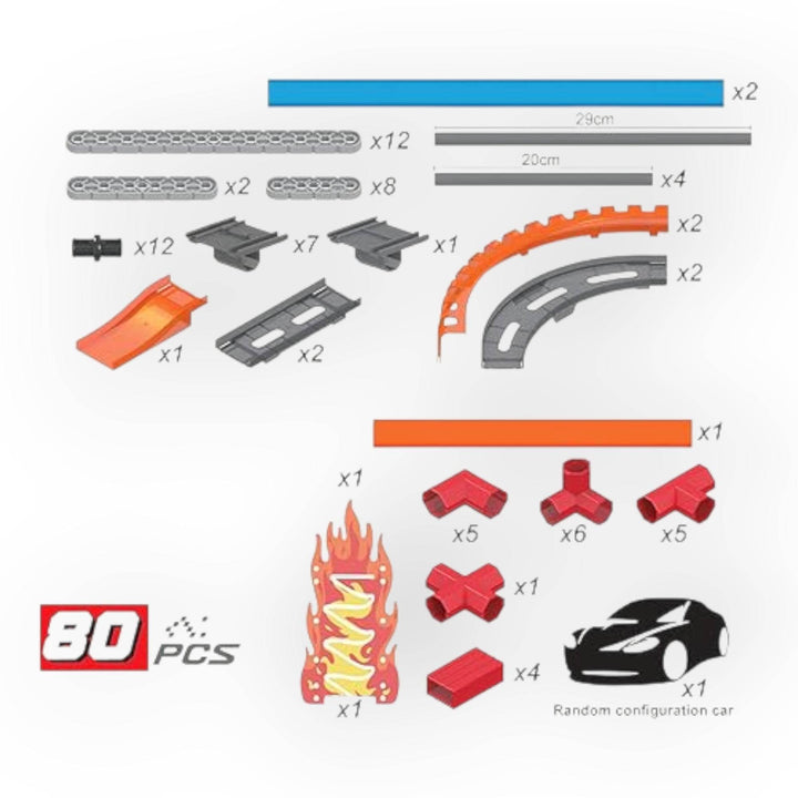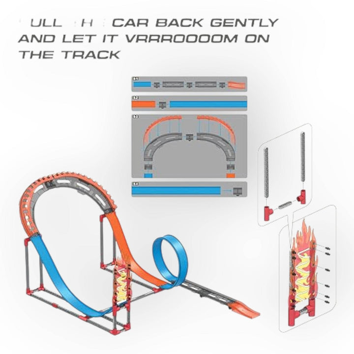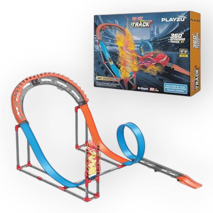 Playzu High Speed Track Set Pull Back - Rally Double 360 Degree loops racing track game with building block sets, strong pull back car and tracks. Ideal for birthday gifts return gifts.