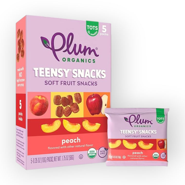 Teensy Snacks for a Teensy Tot. Plum Organics Teensy Snacks are soft fruit snacks made with organic fruit, sized perfectly for little mouths to chew to encourage eating independently. Made without high fructose corn syrup, these organic fruit snacks are available in three flavors - peach, berry, and mixed berry - and are made with only non-GMO, organic ingredients for an organic toddler snack that your little one will love. This multi-pack includes 8 boxes of 5 individually wrapped packs for a convenient snack on the go.