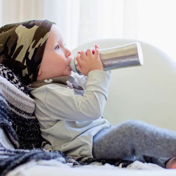 The safest infant feeding bottle on the planet! Our award winning 11oz Kiki infant bottle is 100% plastic-free, environmentally progressive, and adapts to the needs of your growing child. Both the bottle and nipple collar are crafted from safe, high grade #304 stainless steel and our Natural Vent Nipple? (medium flow) is made from medical grade silicone? so you can be sure that you are truly using a 100% BPA/BPS-free and toxin-free feeding system.