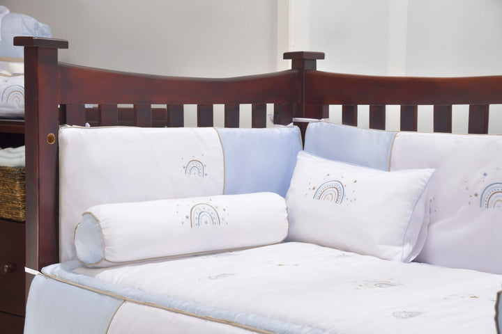 At Blooms and Butterflies, cosiness is our design philosophy. Our Rainbow Blue Pillowcase is made from 100% soft, breathable cotton material, providing a perfectly comfortable surface for your baby.