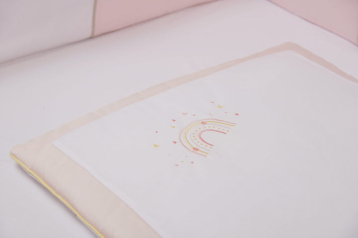 Our Rainbow Pink Hand Quilt is essential for any new mum or dad; its plushy cosiness will help keep the little one safe and warm during their first three months. Made with 100% cotton fabric, it is soft and breathable, perfect for the babys delicate skin. The inner padding provides natural warmth and keeps the babys body temperature in its normal range. All materials used are clean, eco-friendly, and without any additional chemical treatments.