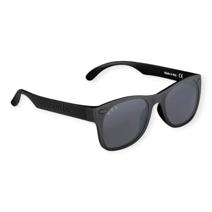 The Roshambo Bueller Black Shades - Baby (2-4Yrs) - Polarized Grey are specially designed to protect your little one’s sensitive eyes with style and comfort. Crafted from ultra-lightweight, flexible, and virtually unbreakable material, these baby sunglasses feature polarized grey lenses that reduce glare and provide 100% UVA/B/C protection. The soft, bendable frame ensures a snug fit for tiny faces without any pinching or pressure. Perfect for everyday outdoor adventures, these shades combine safety, durability, and a cool retro look inspired by 80s classics a must-have accessory for your baby’s sun-safe wardrobe