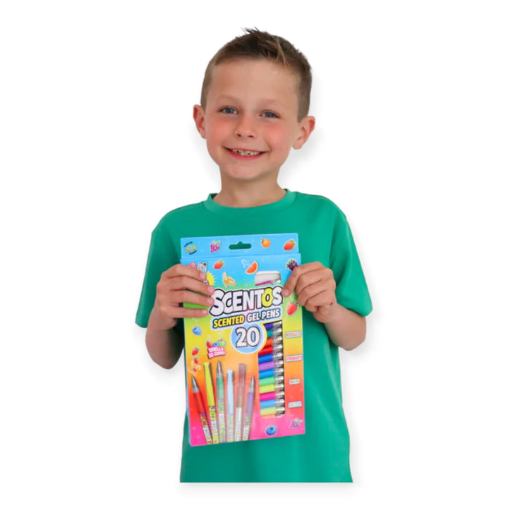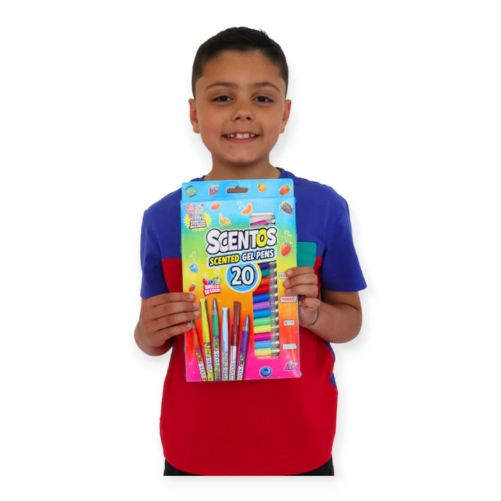 From the premium scented stationery brand Scentos, this Scentos scented gel pens set contains 20 sweet-scented gel pens in a variety of colors! Featuring silly Scentos characters in a super fun assortment of metallic, primary, neon and pastel, your child will love drawing, coloring, and creating away with this value-packed set! Color your way with this fully stocked set! Excellent for the school-age child, for bullet journaling and scrapbooking. Featuring classic, premium fruity scents, the pack includes 5 scented metallic, 5 scented primary, 5 scented neon and 5 scented pastel. 2 scented sticker sheets are also included in the pack. Designed in the USA, the products are completely safe and non-toxic and easy to use for kids of ages 3+ years.
