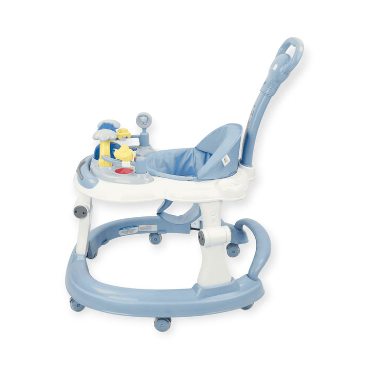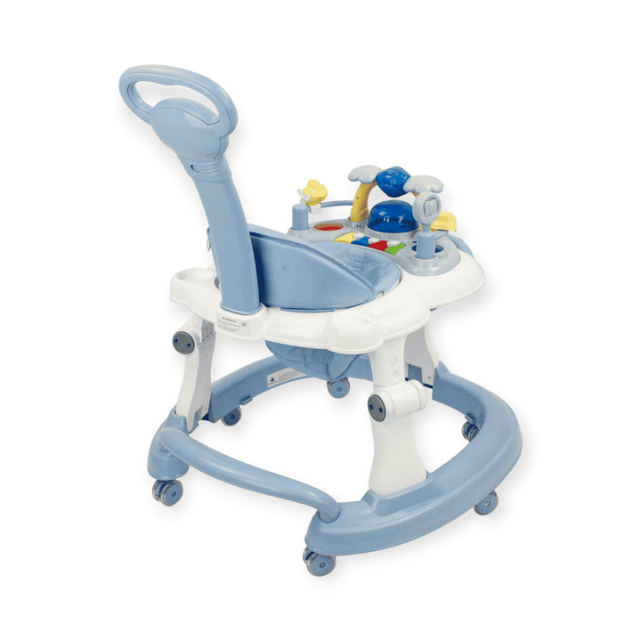 6 Wheels with 360 degree Rotation to Help the Baby Move Freely. Walker Comes with a Detachable Toy Tray with Light & Music, Including Rattle Toys.