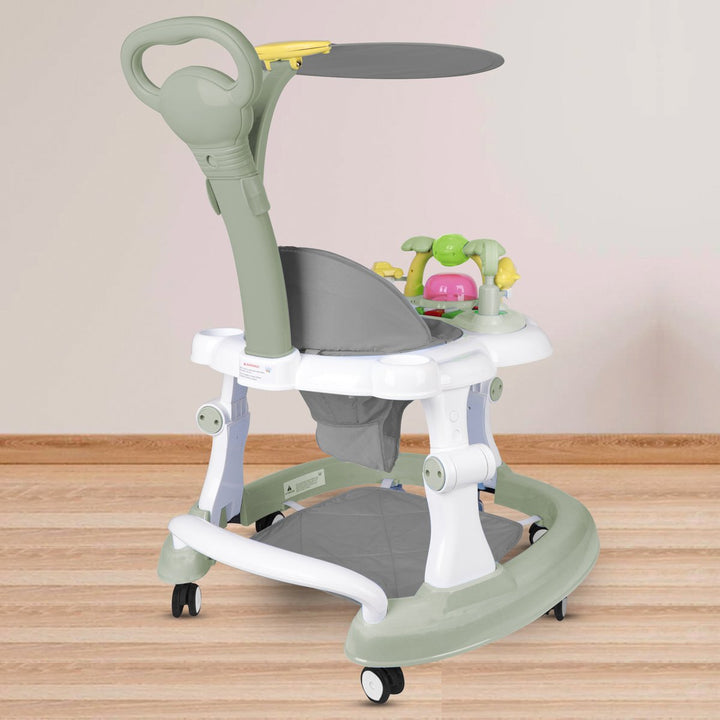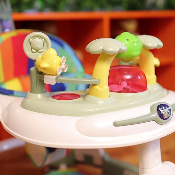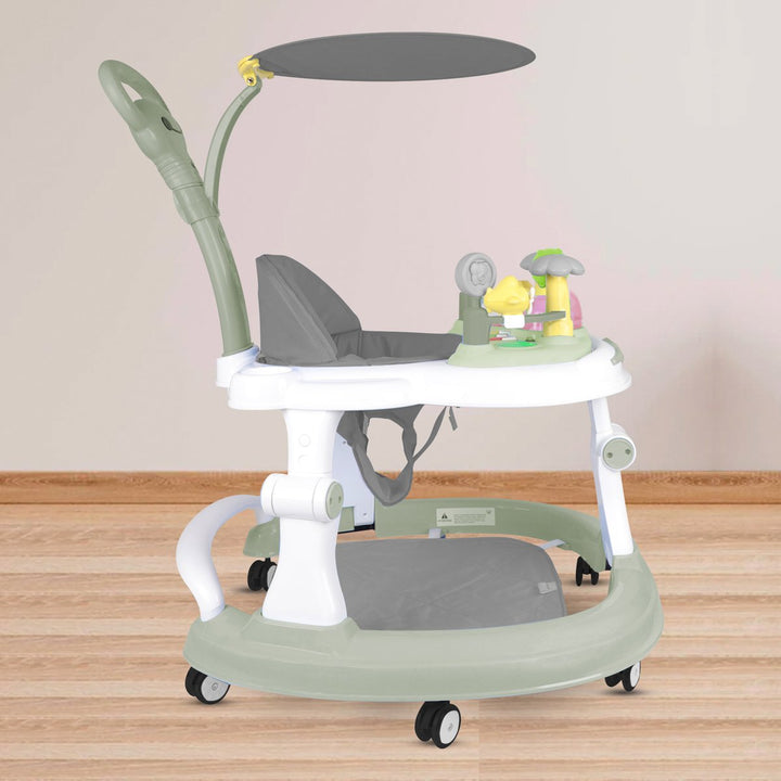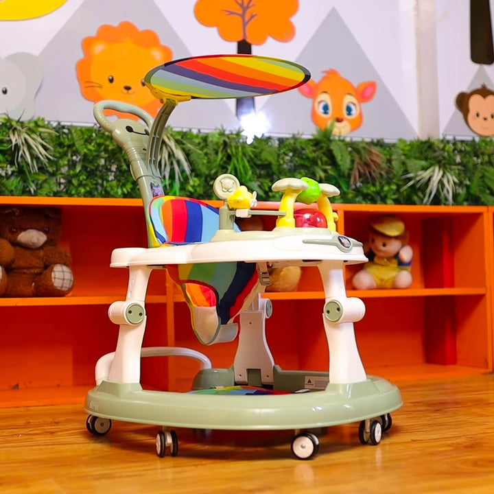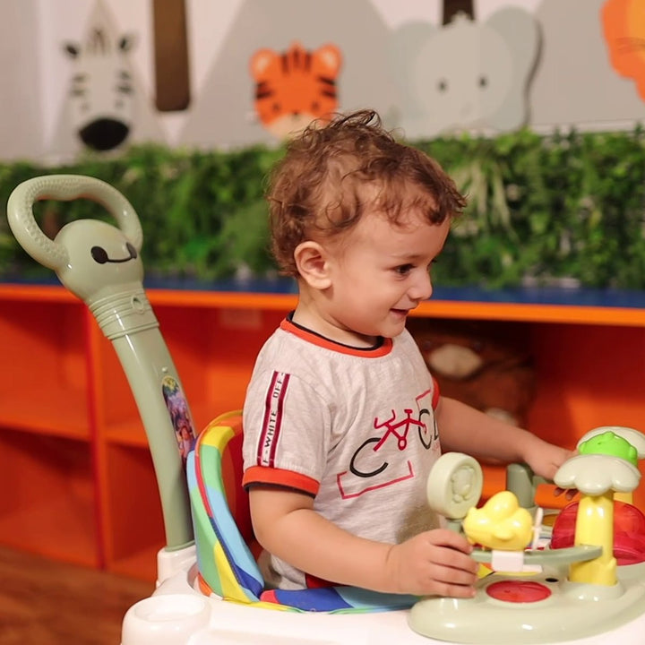 Detachable Toy Tray & Can be converted into food tray . Easy to Install. Foldable and easy to store. Adjustable Seat. With Funky Toys. With Fun Music and Light. Adjutable Height. Sun Shield is provided to give comfort in outdoor. Additional Small handle is provided for baby to learn to walk.