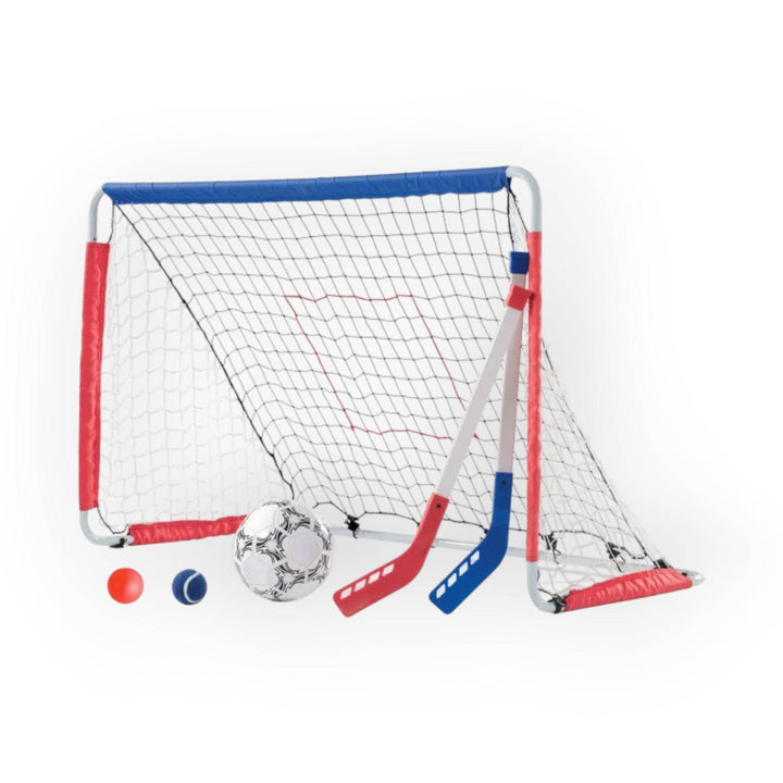Enjoy a fun game of soccer and practice pitching and catching with this Step2 Soccer Goal & Pitchback. This kids sports set will enhance your children's gross motor skills as they kick the ball into the goal or throw the ball at the target. Little athletes will love playing soccer or hockey together or practicing for their next game against another playmate. Made in China.