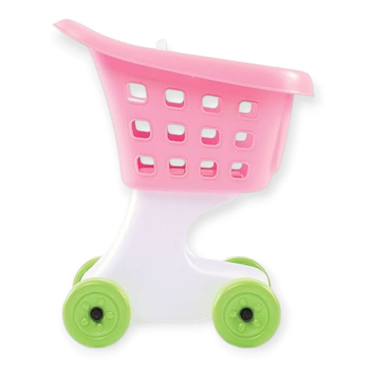 Kids can push the toy grocery cart around the pretend grocery store to stock up on food and other goodies necessary for a day full of imaginative play! Great for put-and-take play and motor skill development, pretend shopping gets kids walking and putting toys into the basket as they go. The spacious toy shopping cart basket keeps treasures safe and easily stored when playtime fun is done, plus the included doll seat has room for a doll or stuffed animal friend to join in the shopping adventures! Complete with easy grip handles, smooth wheels that won’t scratch floors, and included play food set, this shopping cart and accessory set is a playroom essential for every child. Made in the USA.